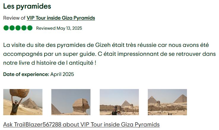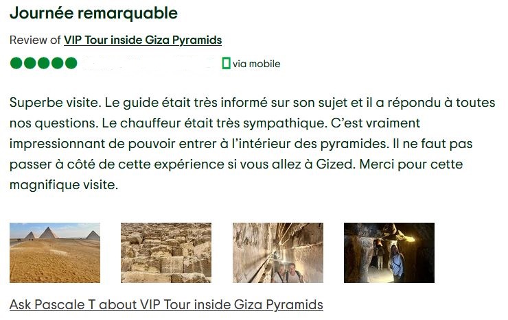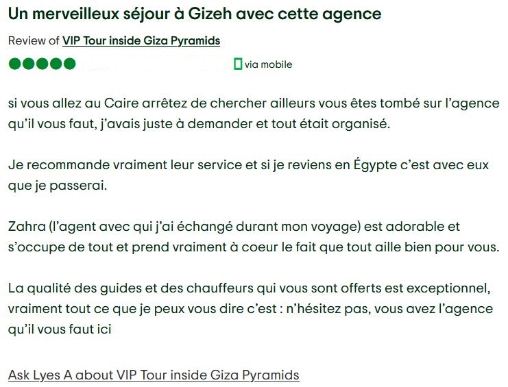 Chaque circuit est encadré par un guide local agréé ou un égyptologue compétent, à la fois chaleureux, professionnel et attentif aux besoins de vos clients — enrichissant l’expérience par son savoir et sa convivialité.